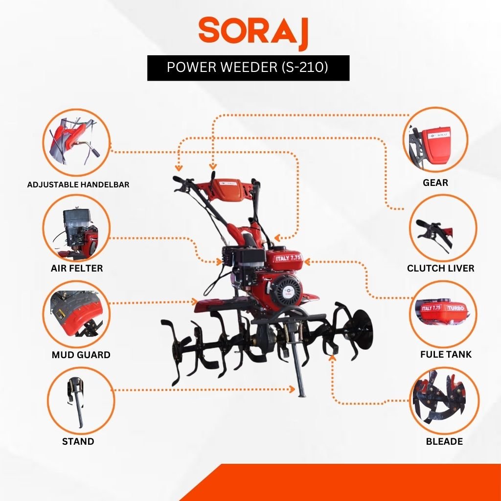 Power Weeder Machine with SORAJ Engine – 7.75 HP Petrol Power Weeder
