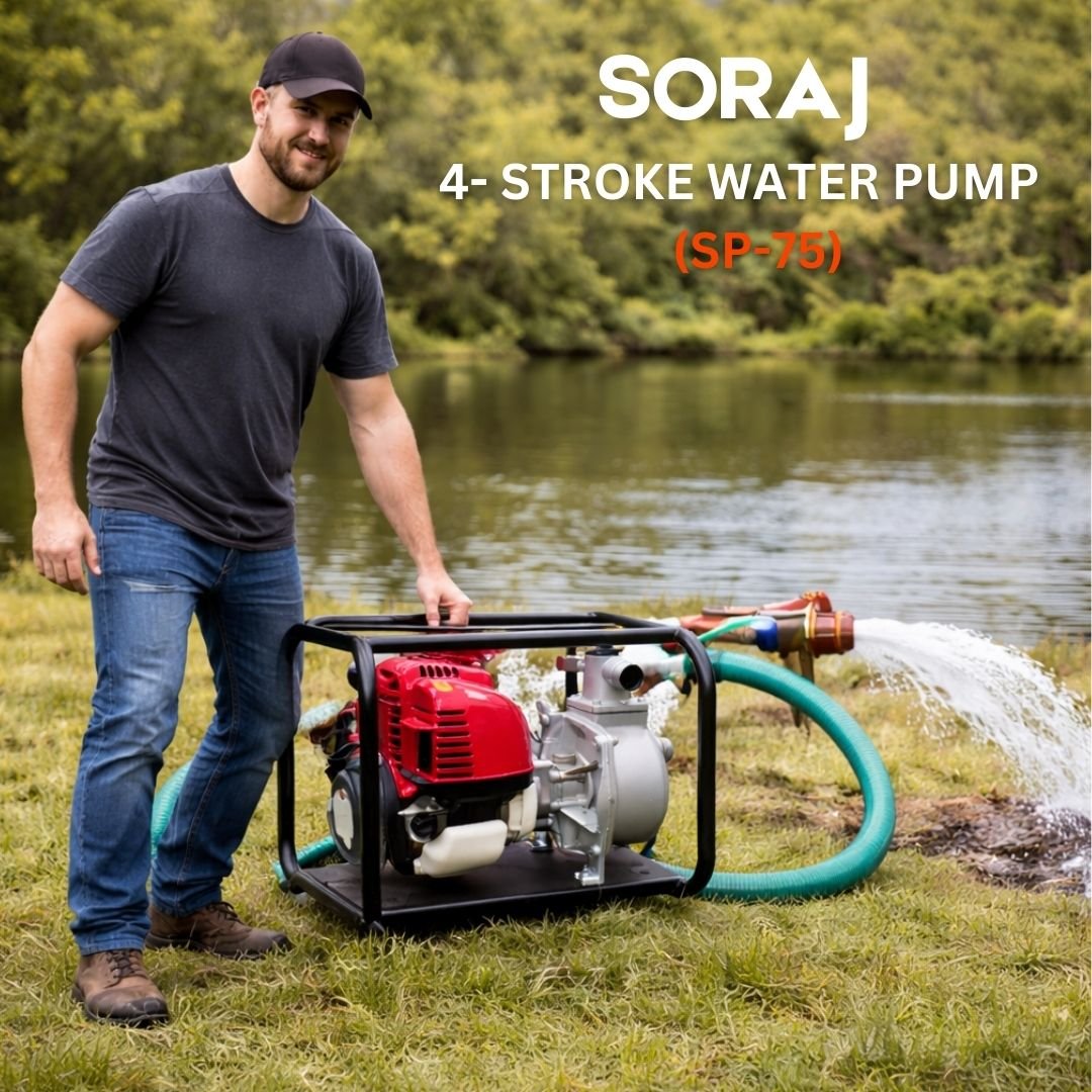 The SORAJ Water Pump SP-75 is a robust, high-performance 4-stroke water pump designed for efficient water transfer in agriculture, gardening, construction, and household applications. Built with durability and ease of use in mind, this pump delivers reliable performance wherever you need it.