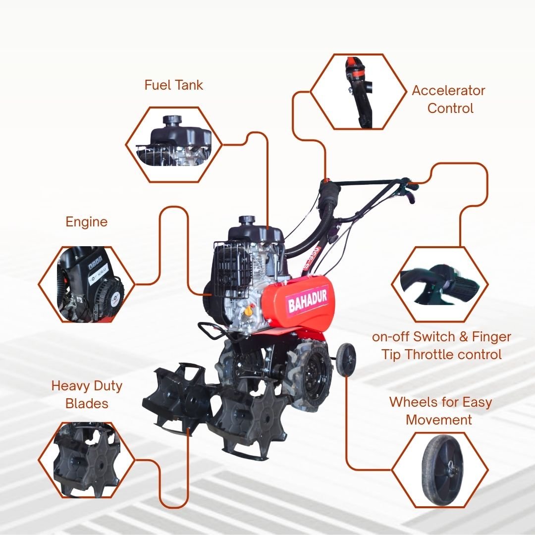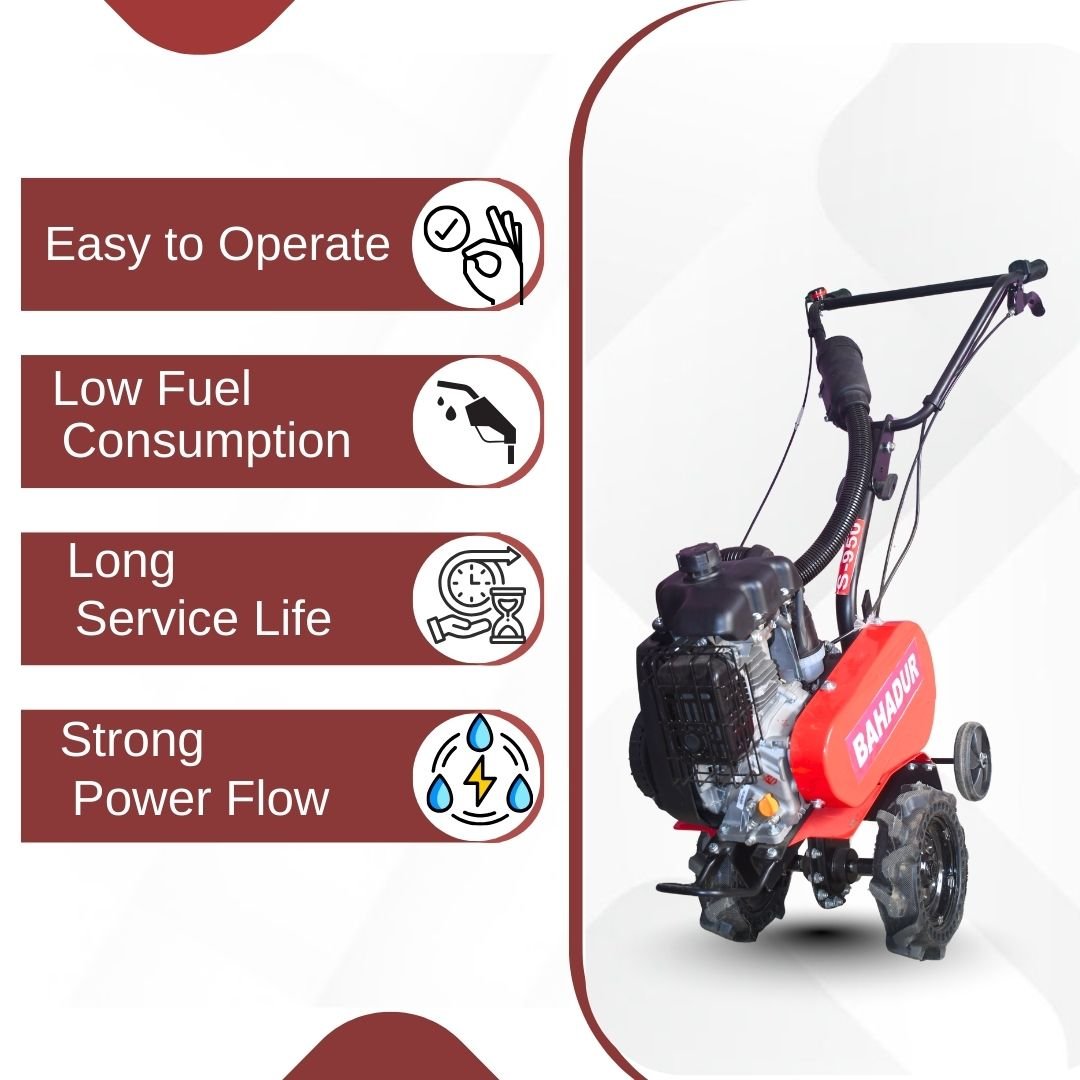 The Soraj Brand Power Weeder is a strong and reliable agricultural machine specially designed for vegetable farming and row crops. It is powered by a 5.5 HP engine and is suitable for different field conditions.