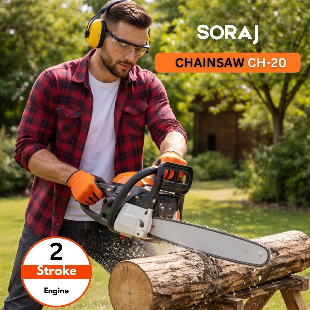 The CHAINSAW CH-20 (SORAJ) is a powerful and reliable tool designed for demanding cutting tasks. Built with a high-performance 58cc 2-stroke engine, this chainsaw delivers strong cutting power while maintaining stable operation and efficient air cooling.